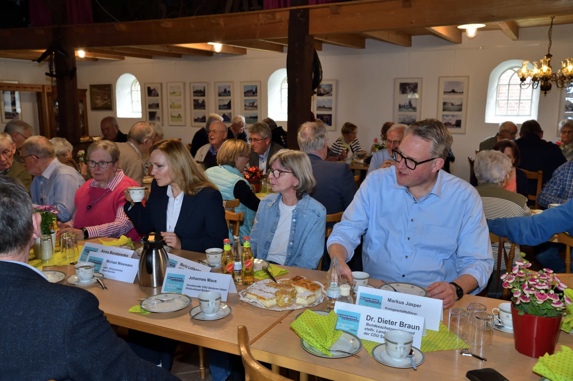 Unter anderem den stellv. Bürgermeister der Stadt Bocholt Michael Wiesmann, den Kreisvorsitzenden der Senioren Union Kreisverband Borken Johannes Maus, Geschäftsführer des CDU Kreisverbandes Borken Markus Jasper und den Bundesschatzmeister der Senioren Union Deutschland sowie den stellv. Landesvorsitzenden der Senioren Union NRW Dr. Dieter Braun. Maria Lohkamp und Anna Bondarenko von der CDU Kreisgeschäftsstelle Borken komplettierten die Liste der Ehrengäste.